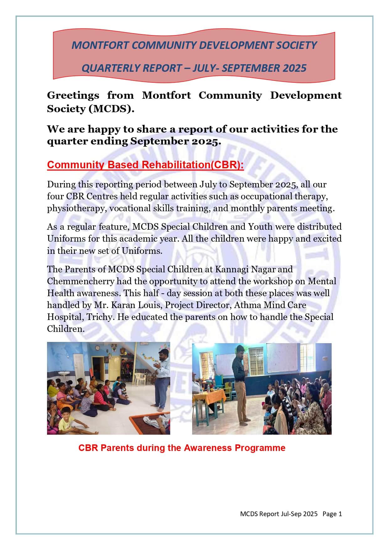 MCDS Activities - July - September 2025