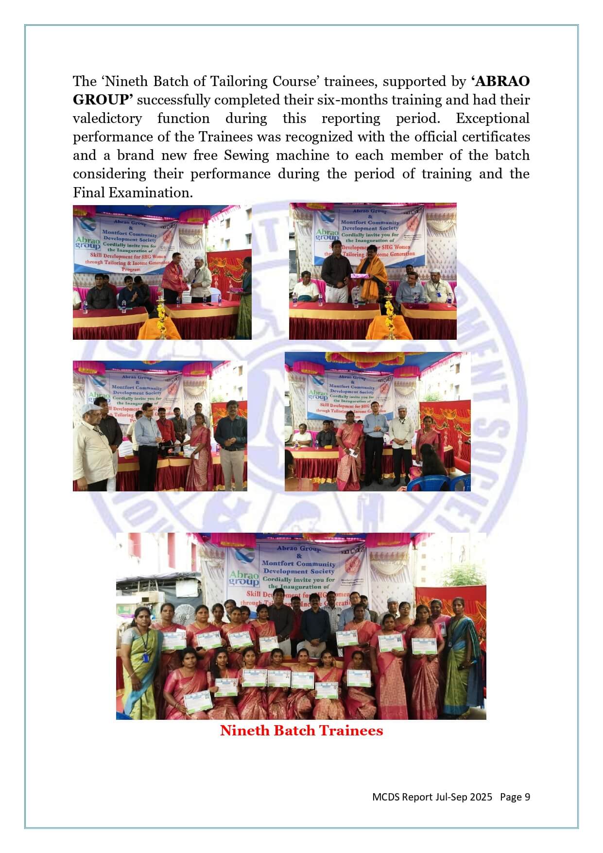 2025- MCDS ABRAO Tailoring Training 9th Batch Valedictory Function