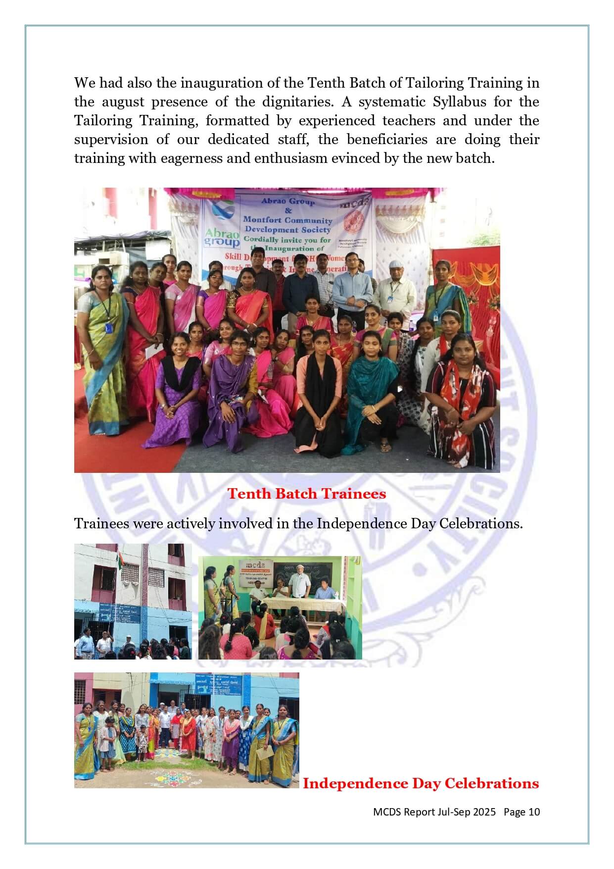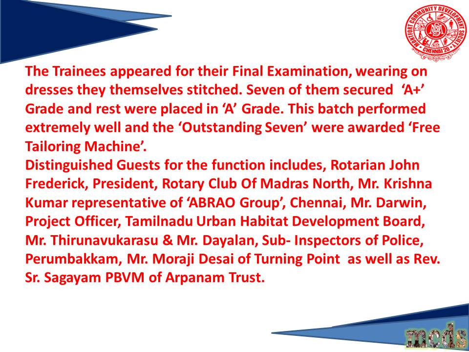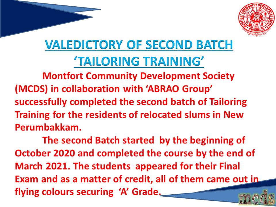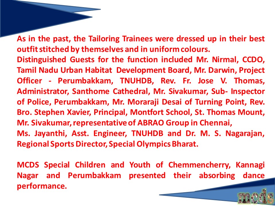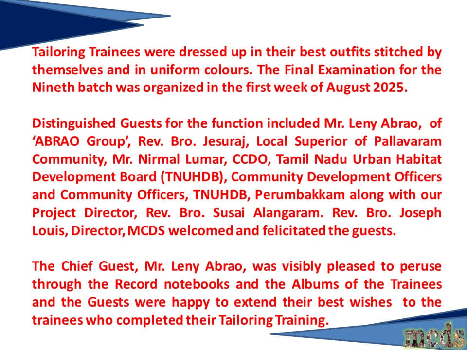 2025- MCDS ABRAO Tailoring Training 9th Batch Valedictory Function
