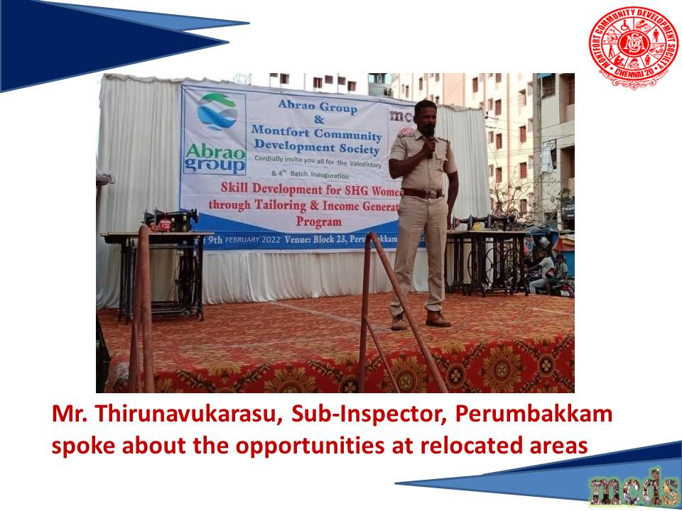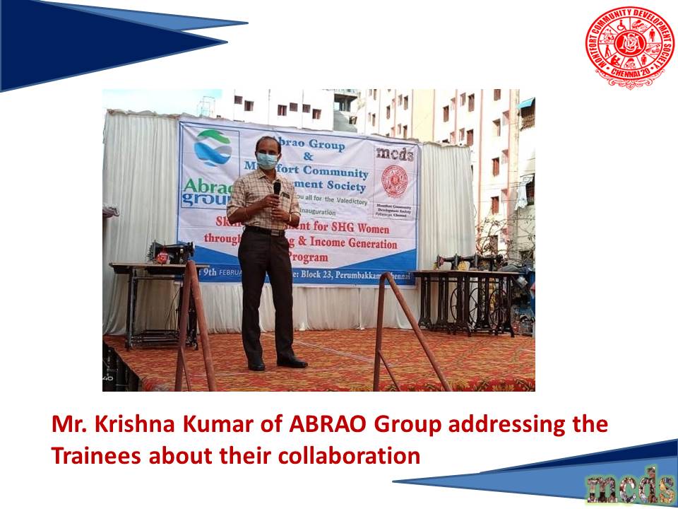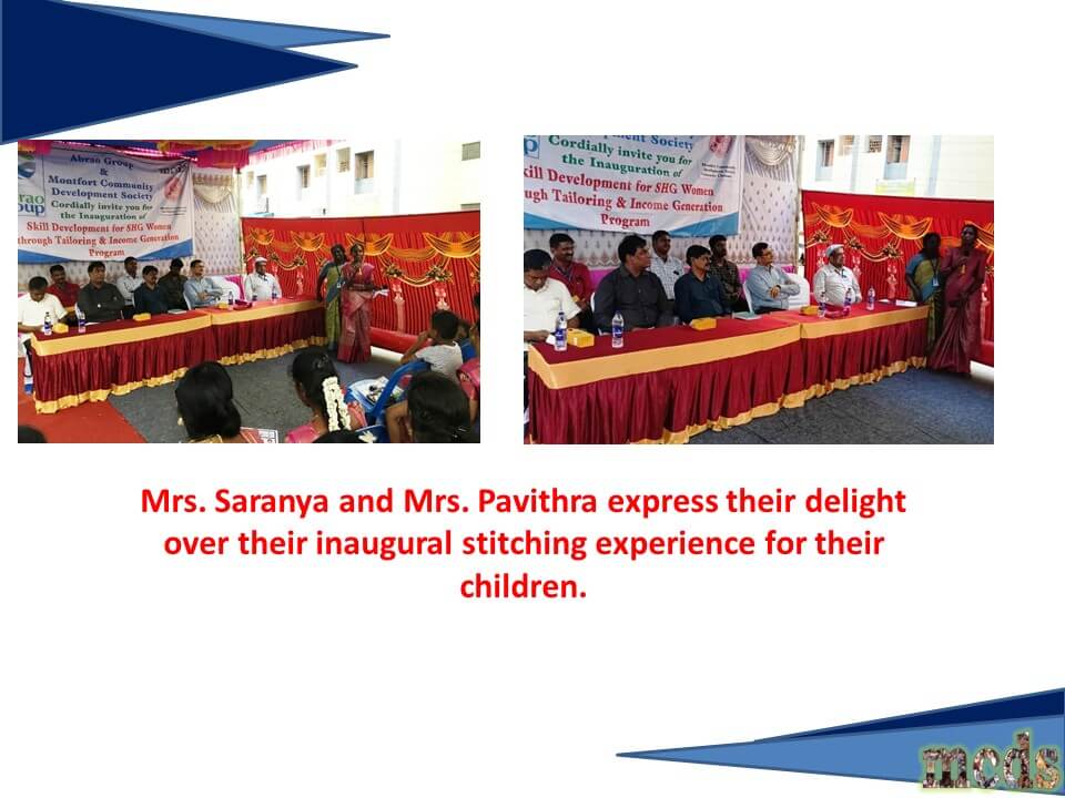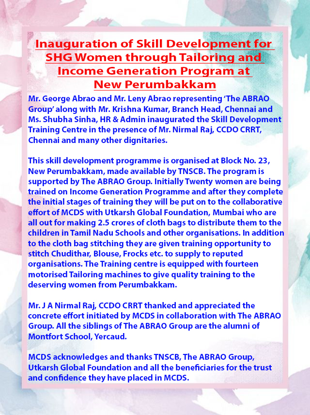 2019 - Inauguration of Skill development for SHG women through Tailoring at New Perumbakkam