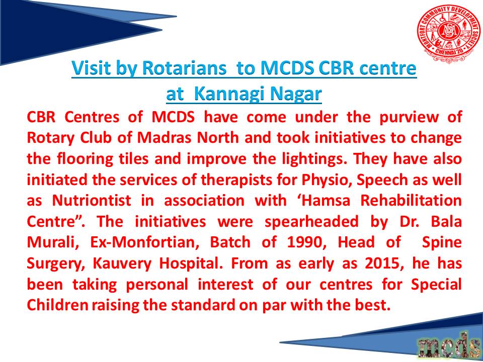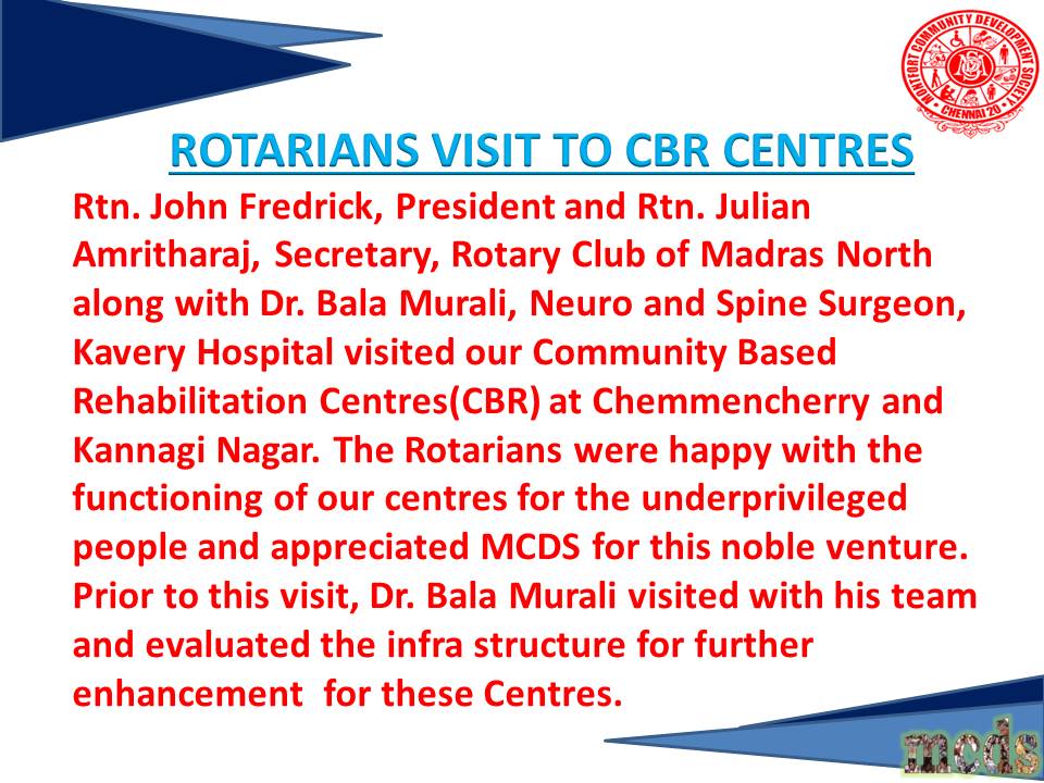 2022- Rotary Club of Ashok Nagar team visits CBR Centres