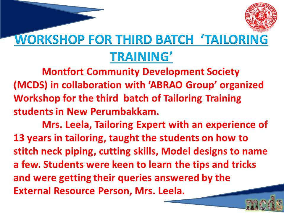 MCDS ABRAO TAILORING TRAINING WORKSHOP