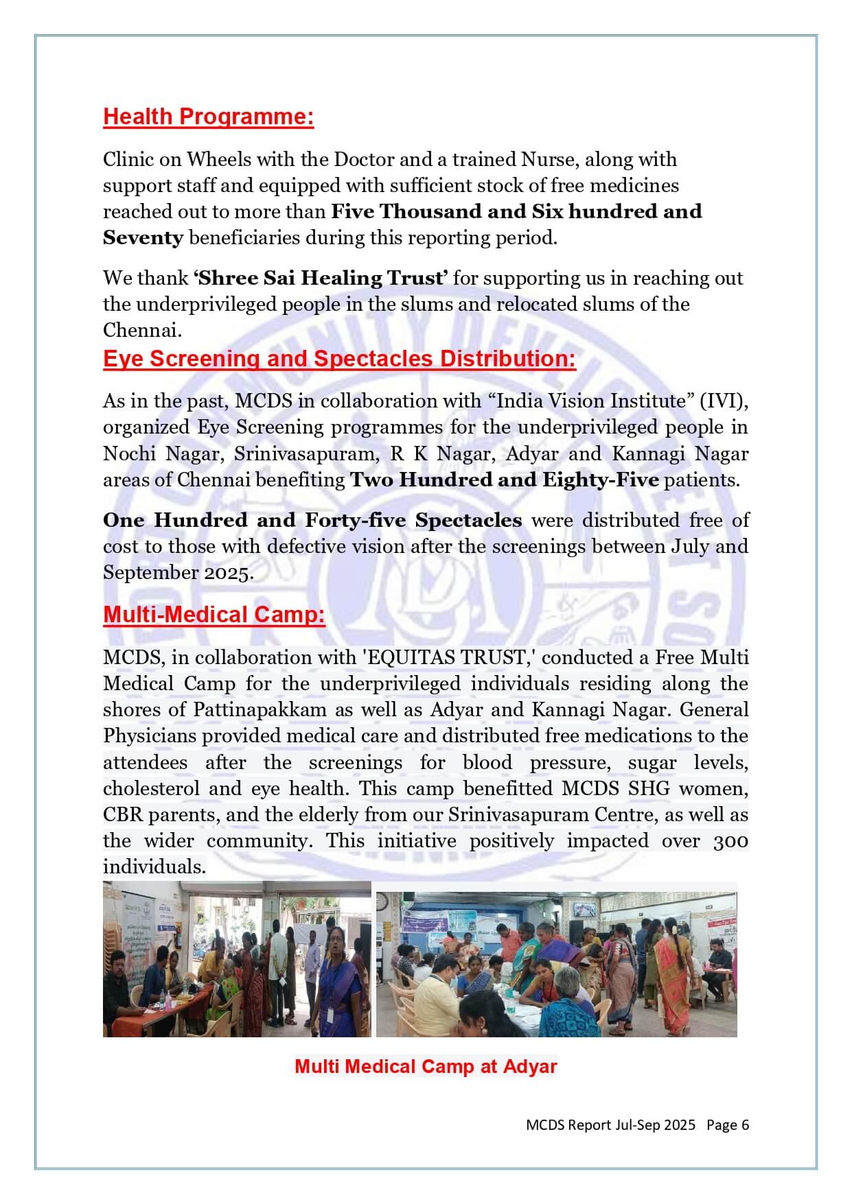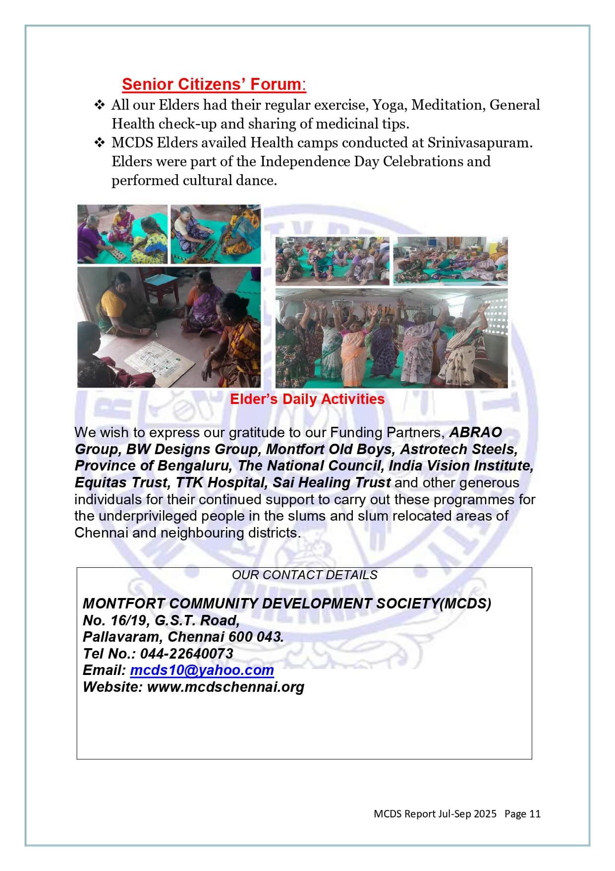 MCDS Activities - July - September 2025