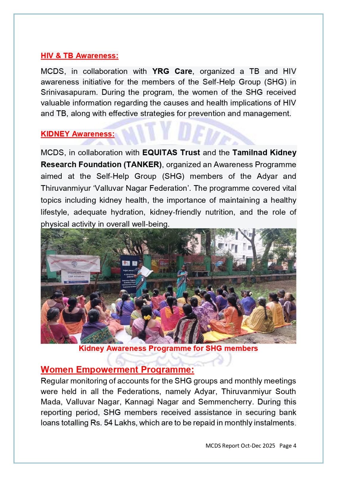 MCDS Activities - October -December 2024